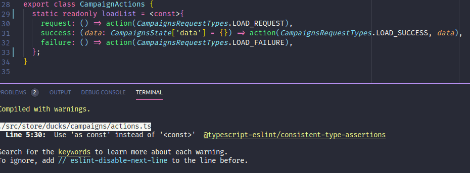 This problem makes the vscode eslint extension virtually unusable. It is not possible to invoke the atomics object as a function. This rule enforces that private members are marked as readonly if they're never modified outside of the constructor. This problem makes the vscode eslint extension virtually unusable. I found several issues opened in this repository that seem to be linked but they were all closed except for these ones: The atomics object does not have a call internal method; Member variables with the privacy private are never permitted to be modified outside of their declaring class.. __dirname , } , } ;